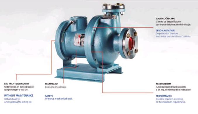 La principal especificación técnica que la bomba zm está especialmente diseñada para refrigeración industrial ya que cuenta con un sistema de cámara de desgasificación que no permite la formación de burbujas y la eventual cavitación, la entrada del producto la tubina está sellada por medio de un sello laberíntico para evitar la turbulencia. Gracias al diseño sus cámaras, no necesita de una altura de líquido para su correcto funcionamiento", y como siempre, la principal característica es que las bombas de Bombadur "no cavitan".